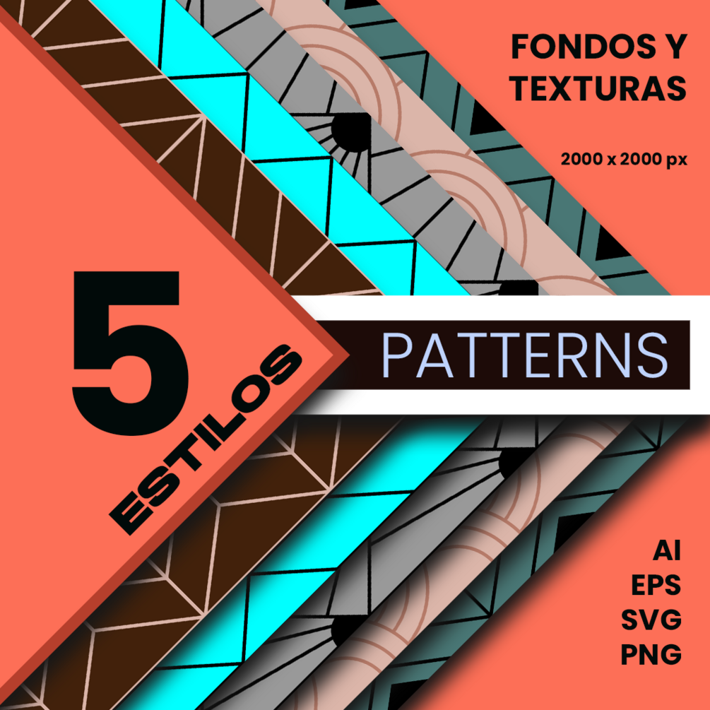 5 estilos de patrones, para fondos o texturas de publicaciones o presentaciones digitales.